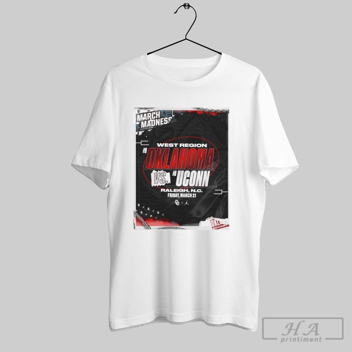 Poster March Madness West Region Oklahoma Mens Basketball Vs Uconn Raleigh Nc March 21 2025 T Shirt