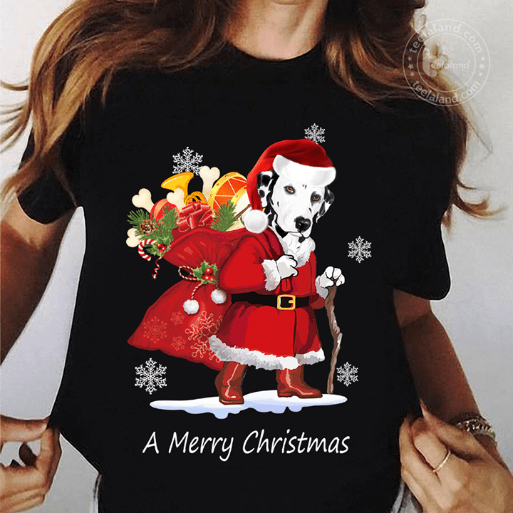 Santa Claus Dalmatian And Xmas Gifts Bag Merry Christmas Shirt