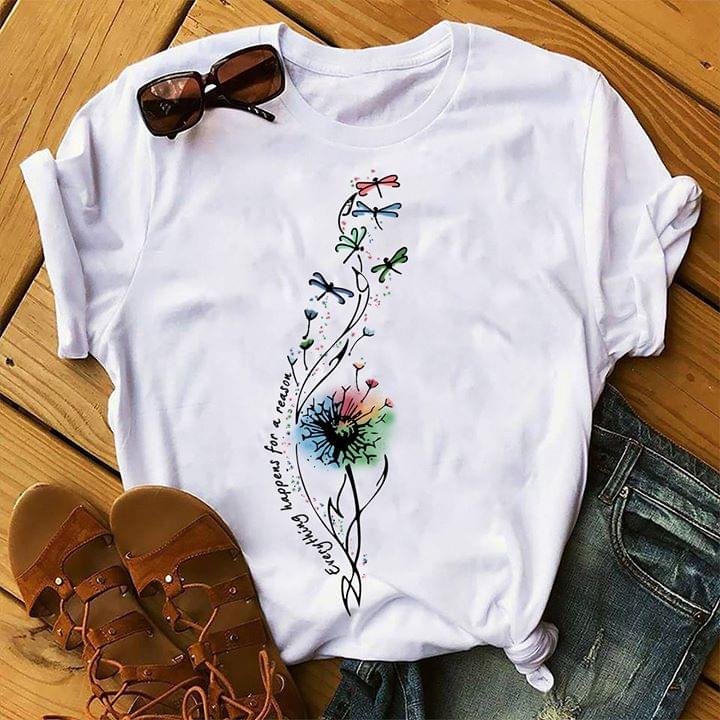 Simple Flowers And Dragonflies Everything Happens For A Reason Shirt