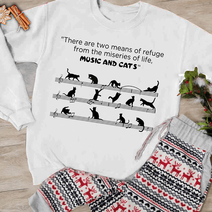 There Are Two Means Of Refuge From The Miseries Of Life Music And Cats Shirt
