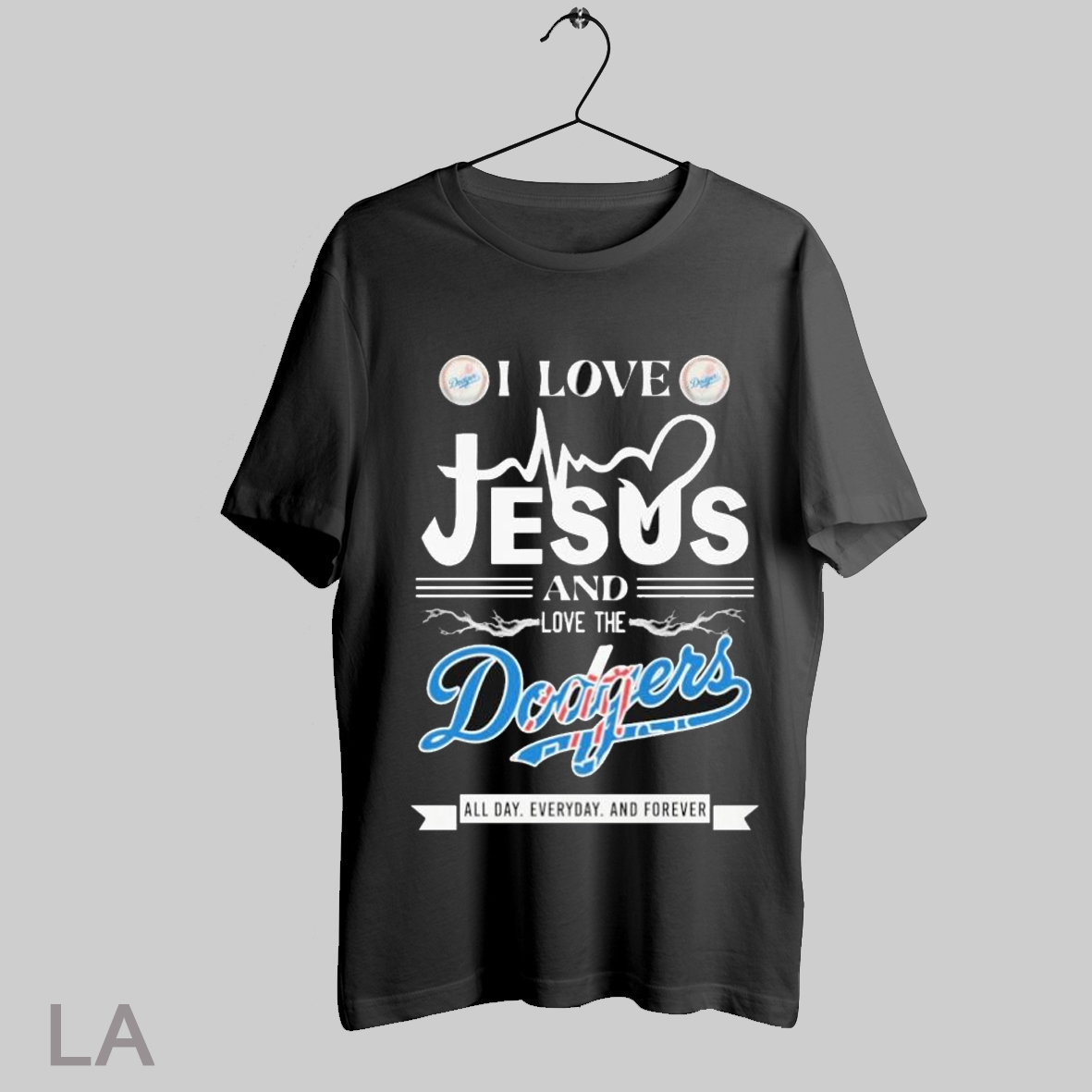 Top I Love Jesus And The Los Angeles Dodgers All Day Everyday And Forever T Shirt Sweatshirt Tee Shirt