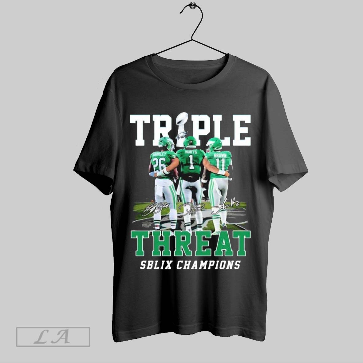Top Saquon Barkley And Jalen Hurts And Aj Brown Philadelphia Eagles Philly Triple Threat Sblix Champions T Shirt Sweatshirt Hoodie Shirt