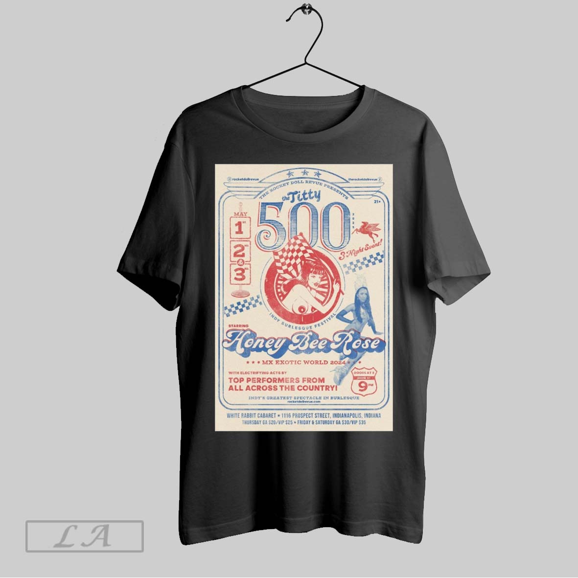 Top The Rocket Doll Revue Presents The Titty 500 Indy Burlesque Festival Staring Honey Bee Rose Mx Exotic World 2024 Poster T Shirt Sweatshirt Hoodie Shirt