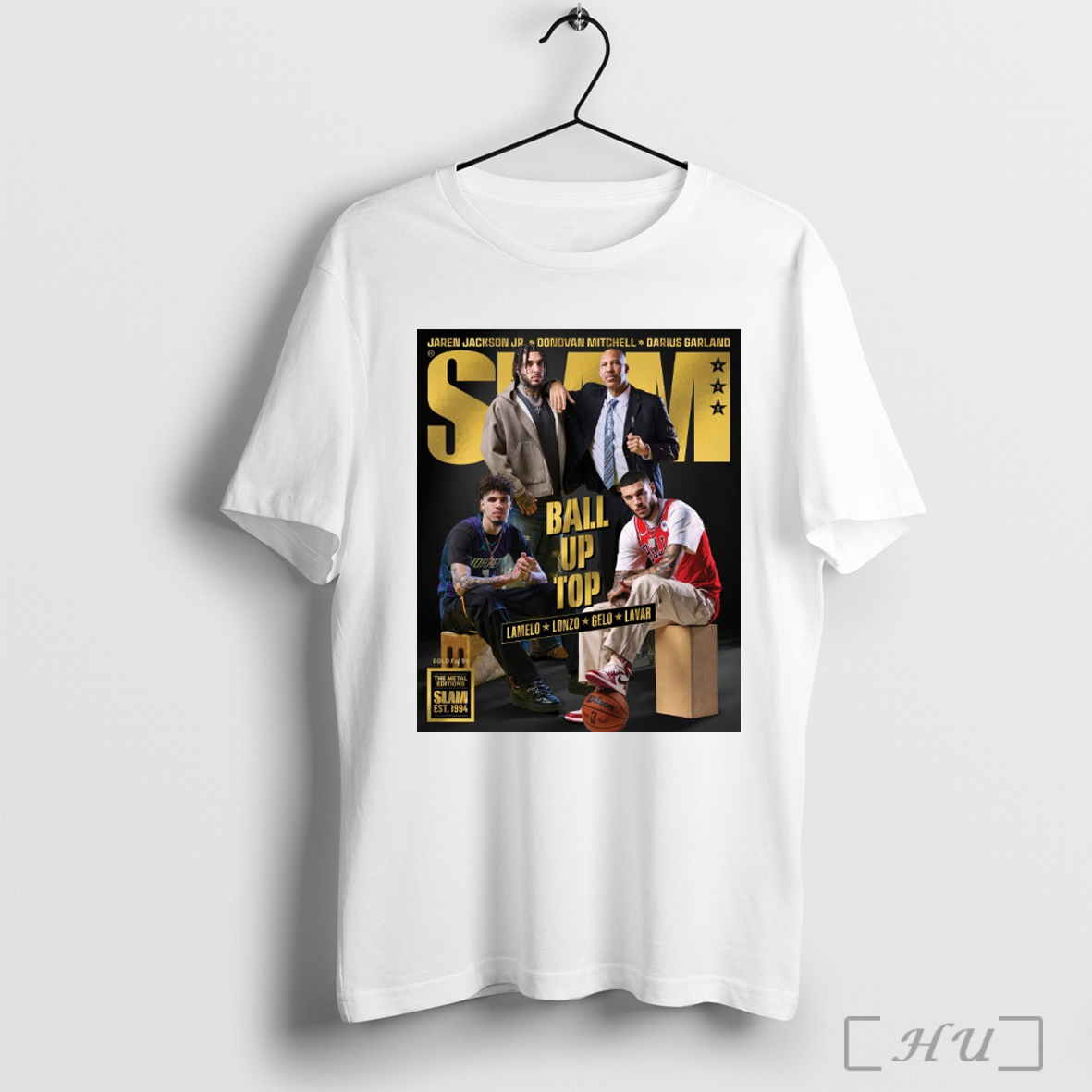 Trending Slam Cover Gold Ball Up Top Lamelo Lonzo Gelo Lavar Jaren Jackson Jr Donovan Mitchell Darius Garland Poster T Shirt Sweatshirt