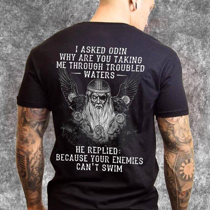 Viking King I Asked Odin Why Are You Taking Me Through Troubled Waters Shirt (back Side)