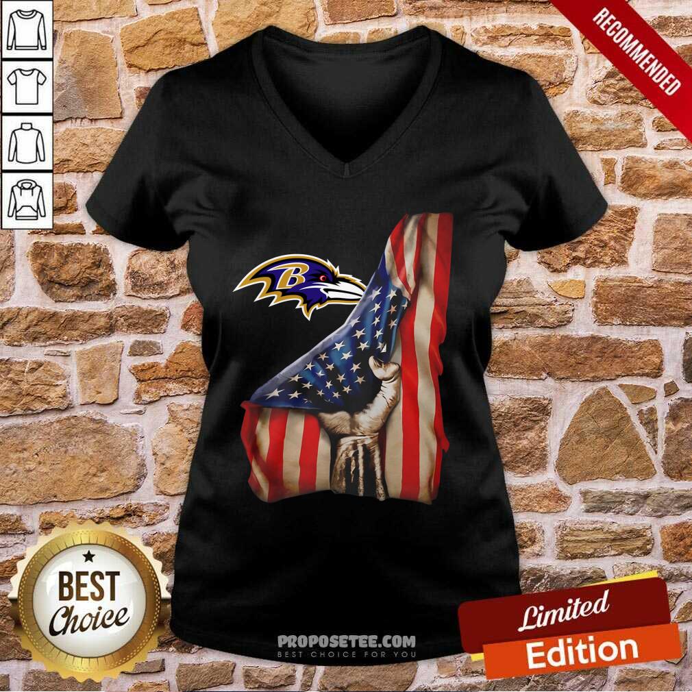 Baltimore Ravens Logo And American Flag Drop 2021 V-neck