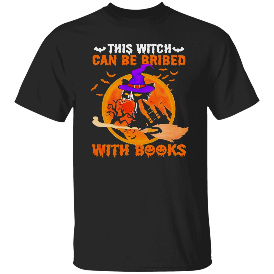 Cat Witch This Witch Can Be Bribed With Books Moon Shirt