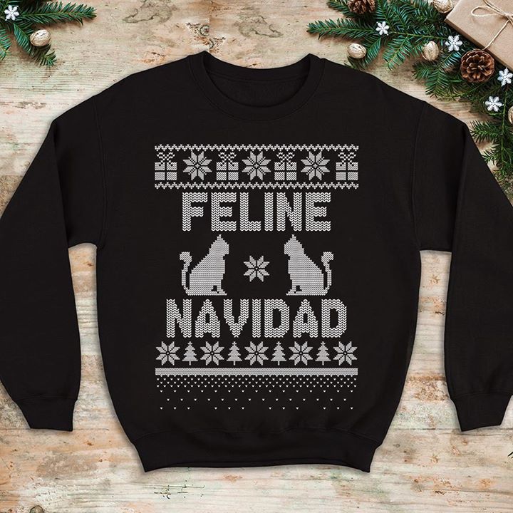 Christmas Pattern Double Cat Feline Navidad Shirt