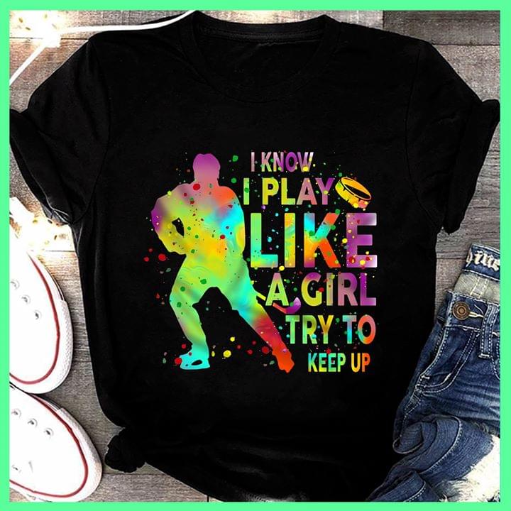 Colorful Hockey I Know I Play Like A Girl Try To Keep Up Shirt