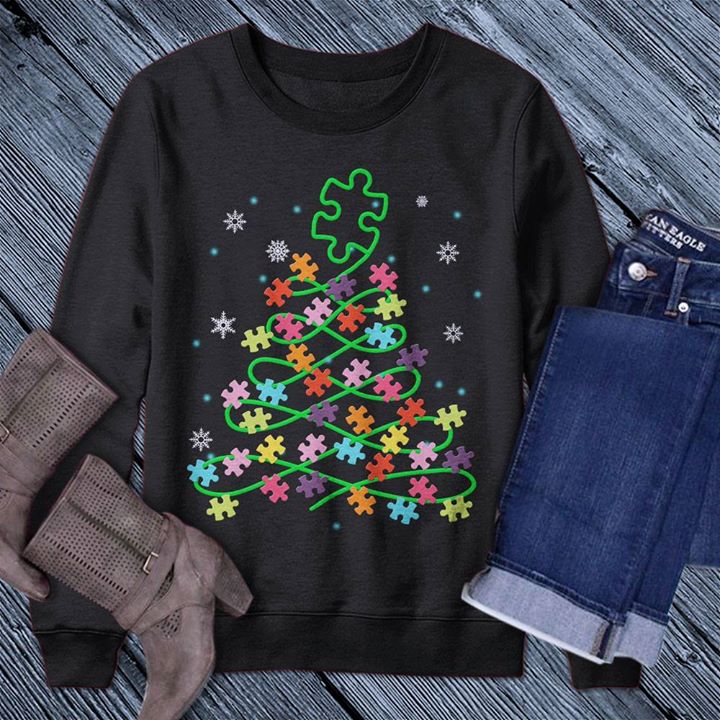 Colorful Puzzles Christmas Tree Shaped Under Snow Shirt