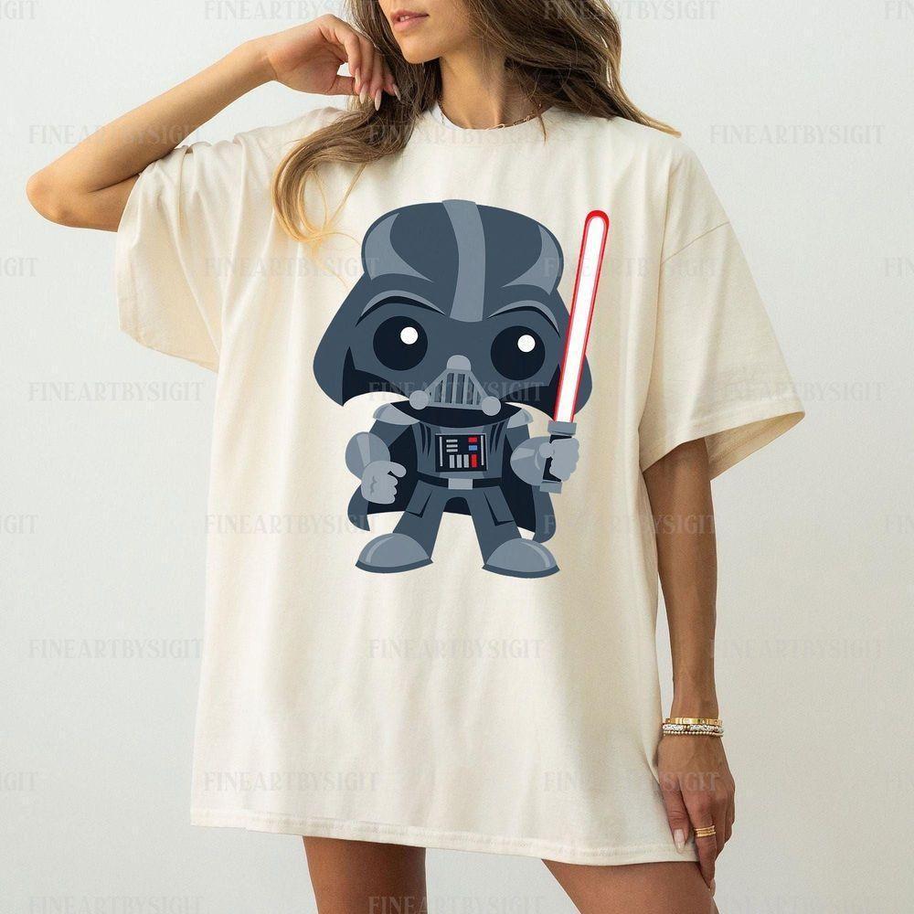 Cute Darth Vader And Cartoon Saber Graphic Star Wars Vuitino Merch