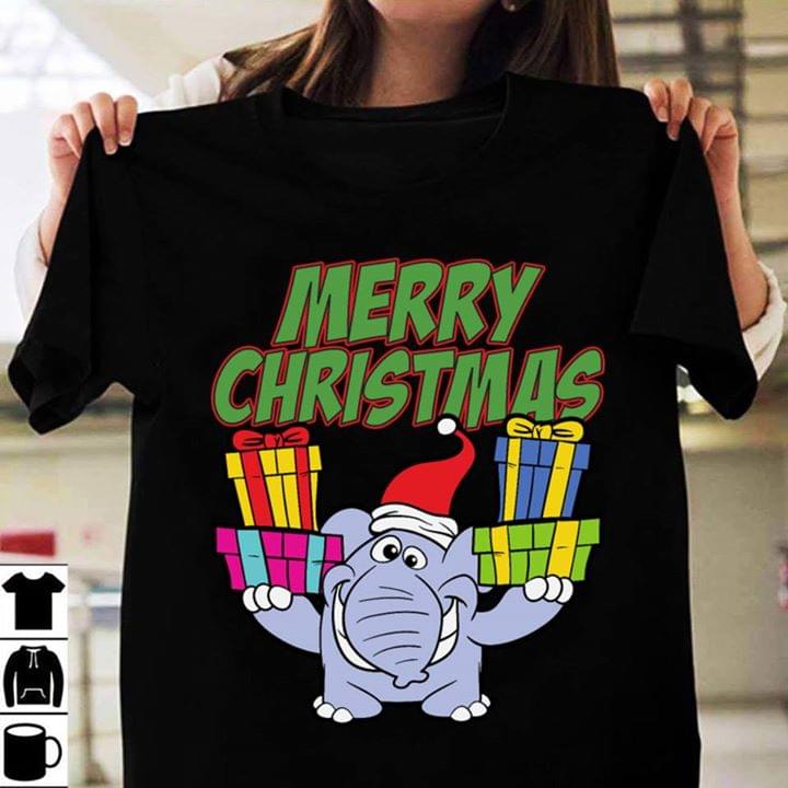 Cute Elephant And Gifts Merry Christmas Shirt