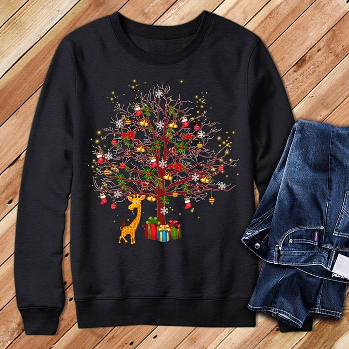 Cute Giraffe And Merry Christmas Gifts Tree Shirt