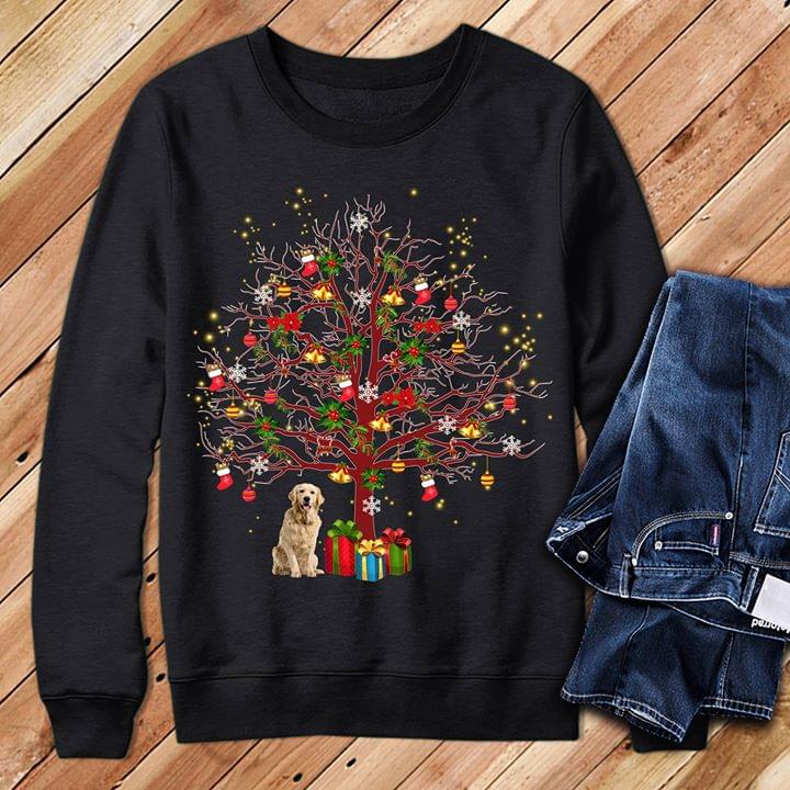 Cute Golden Puppy And Merry Christmas Gifts Tree Shirt