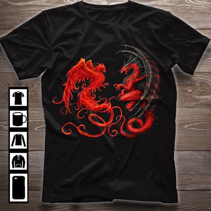 Fire Phoenix And Fire Dragon Fighting Shirt
