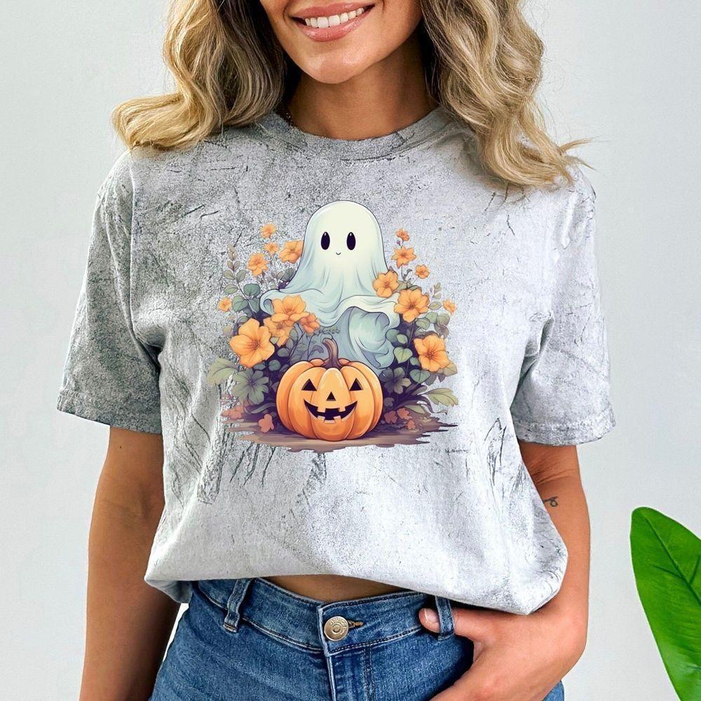 Floral Ghost Pumpkin Retro Halloween Tie Dye Vuitino Apparel