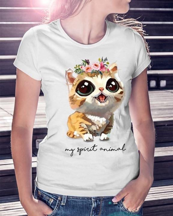 Flowers Cute Tiny Cat Is My Spirit Animal Shirt