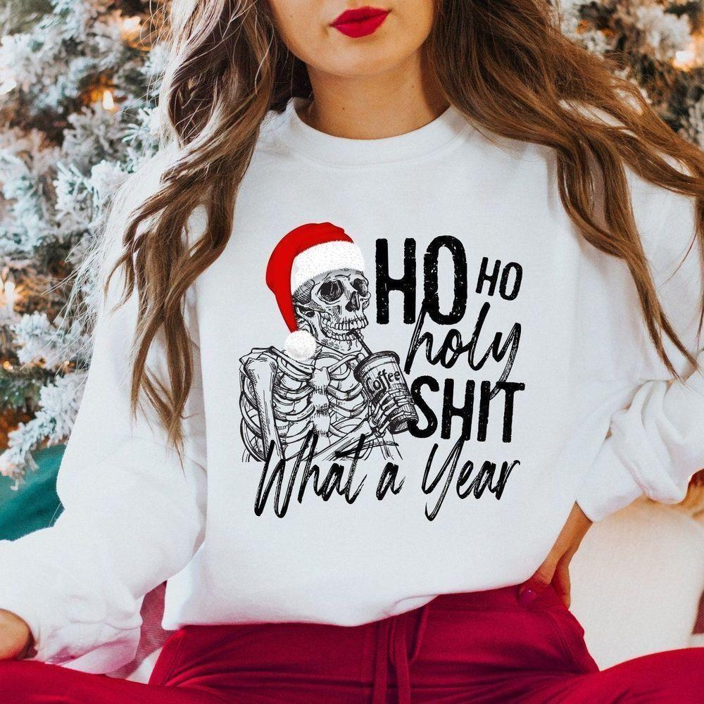 Ho Ho Holy Shit What A Year – Skeleton Christmas T-shirt