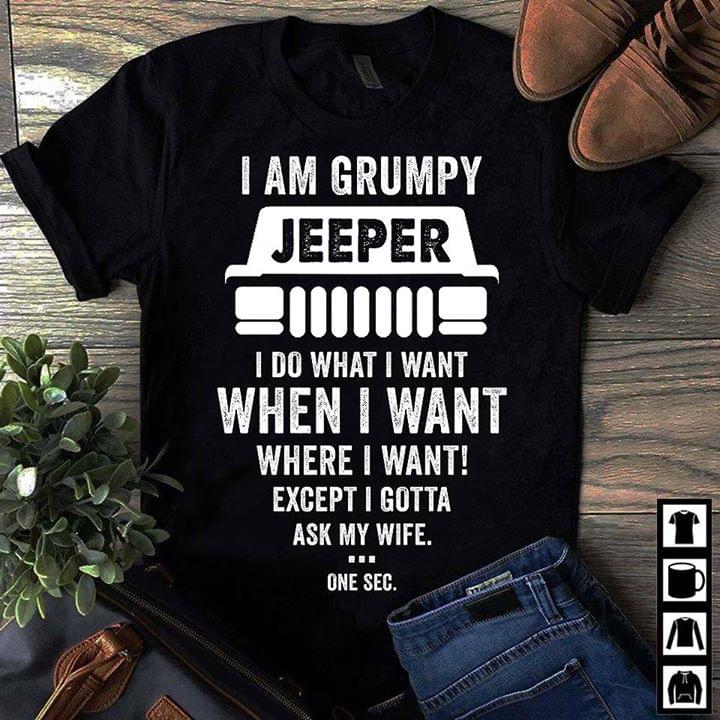 I Am Grumpy Jeeper I Do What I Want When I Want Where I Want Except I Gotta Ask My Wife One Sec Shirt