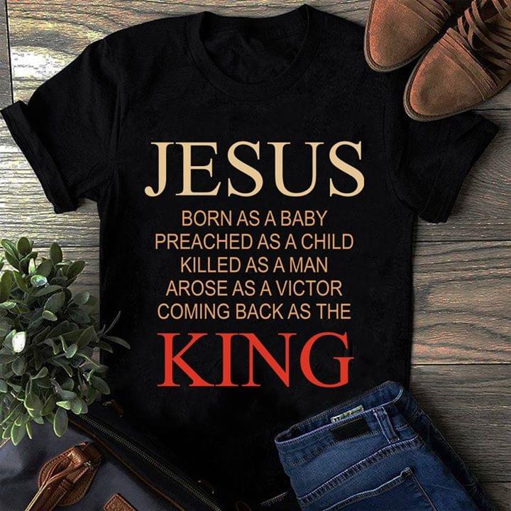 Jesus Born As A Baby Preached As A Child Killed As A Man Arose As A Victor Shirt