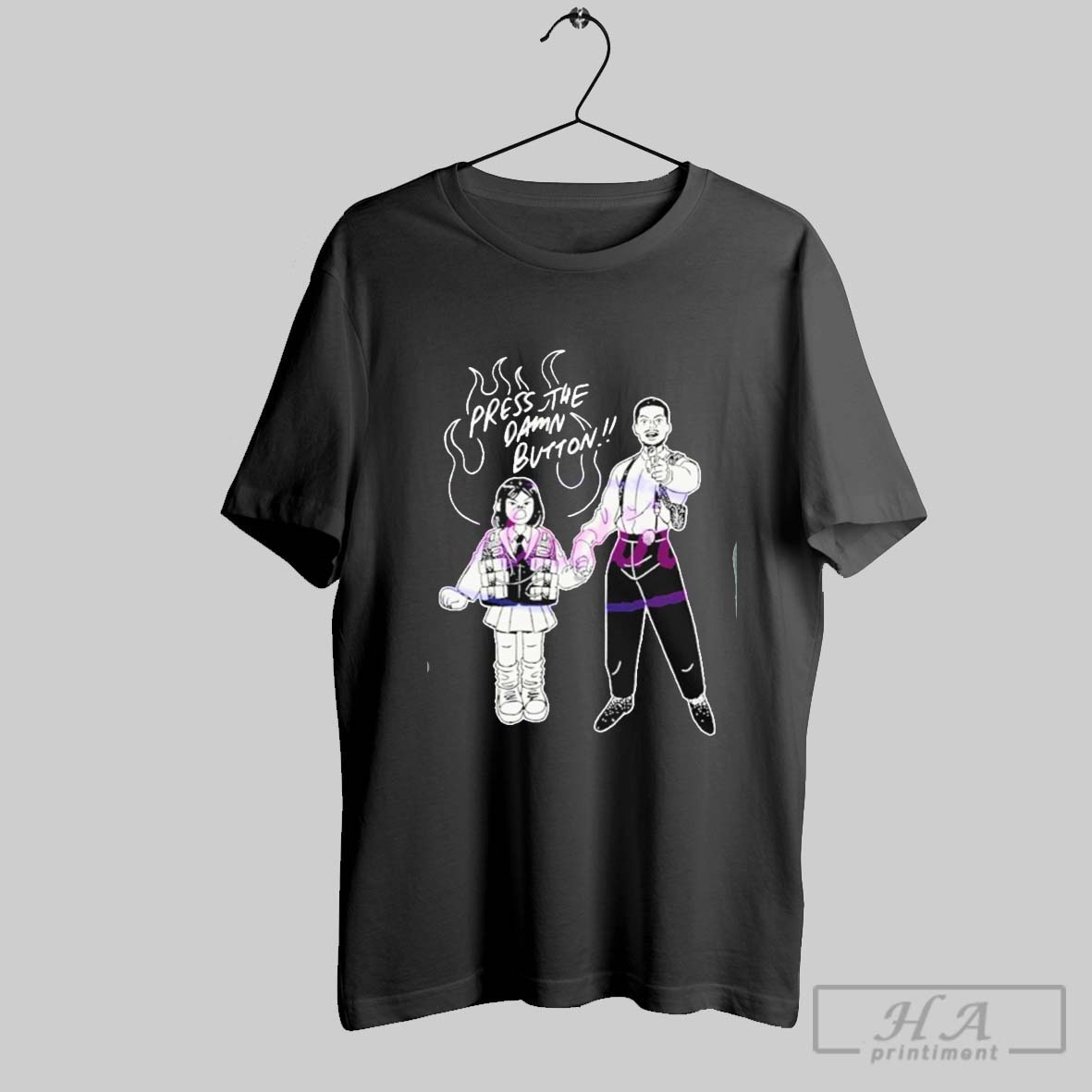Official Press The Damn Button Rush Hour Carter And Soo Yung Shirt